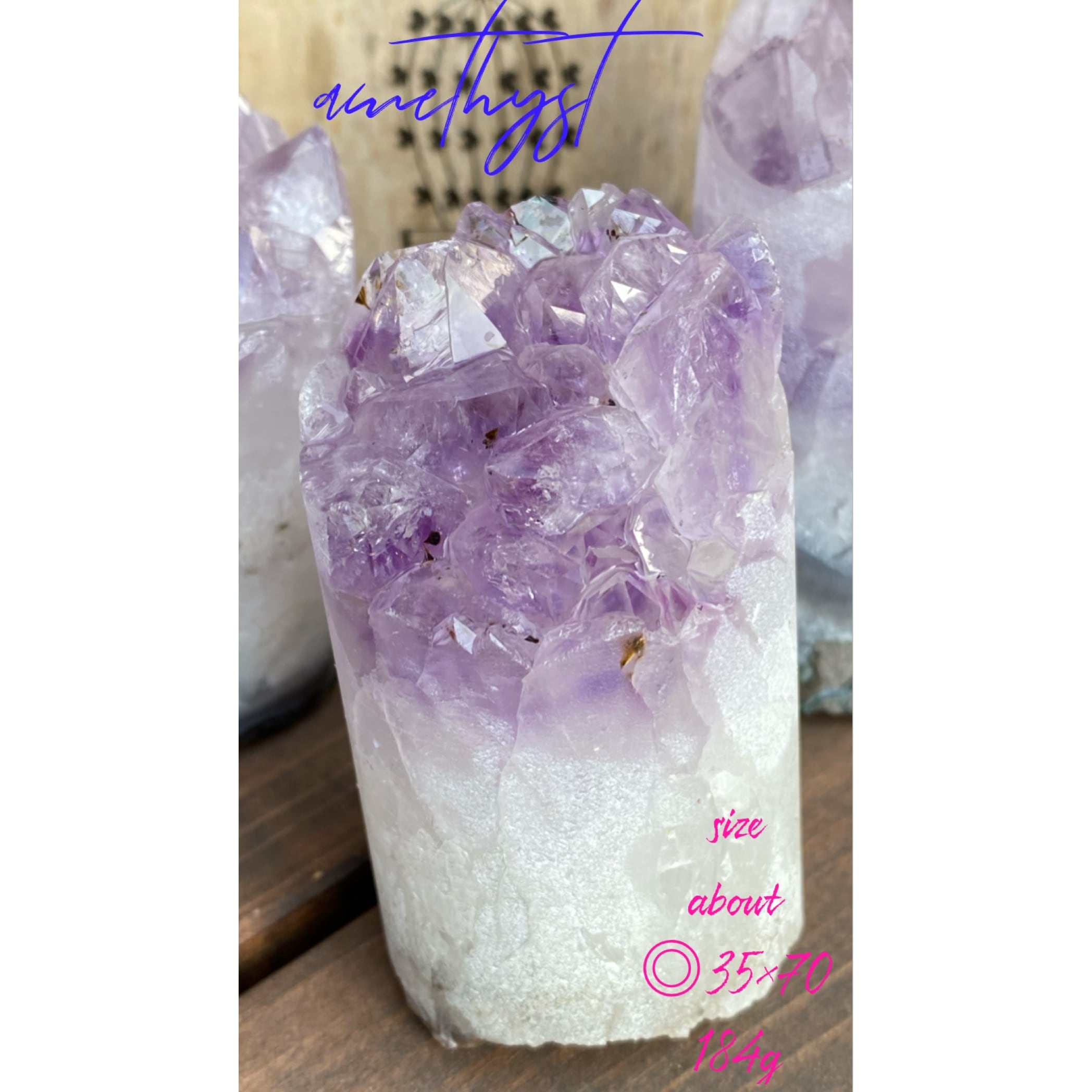 アメジストクラスターを丸く円柱にカットしています。