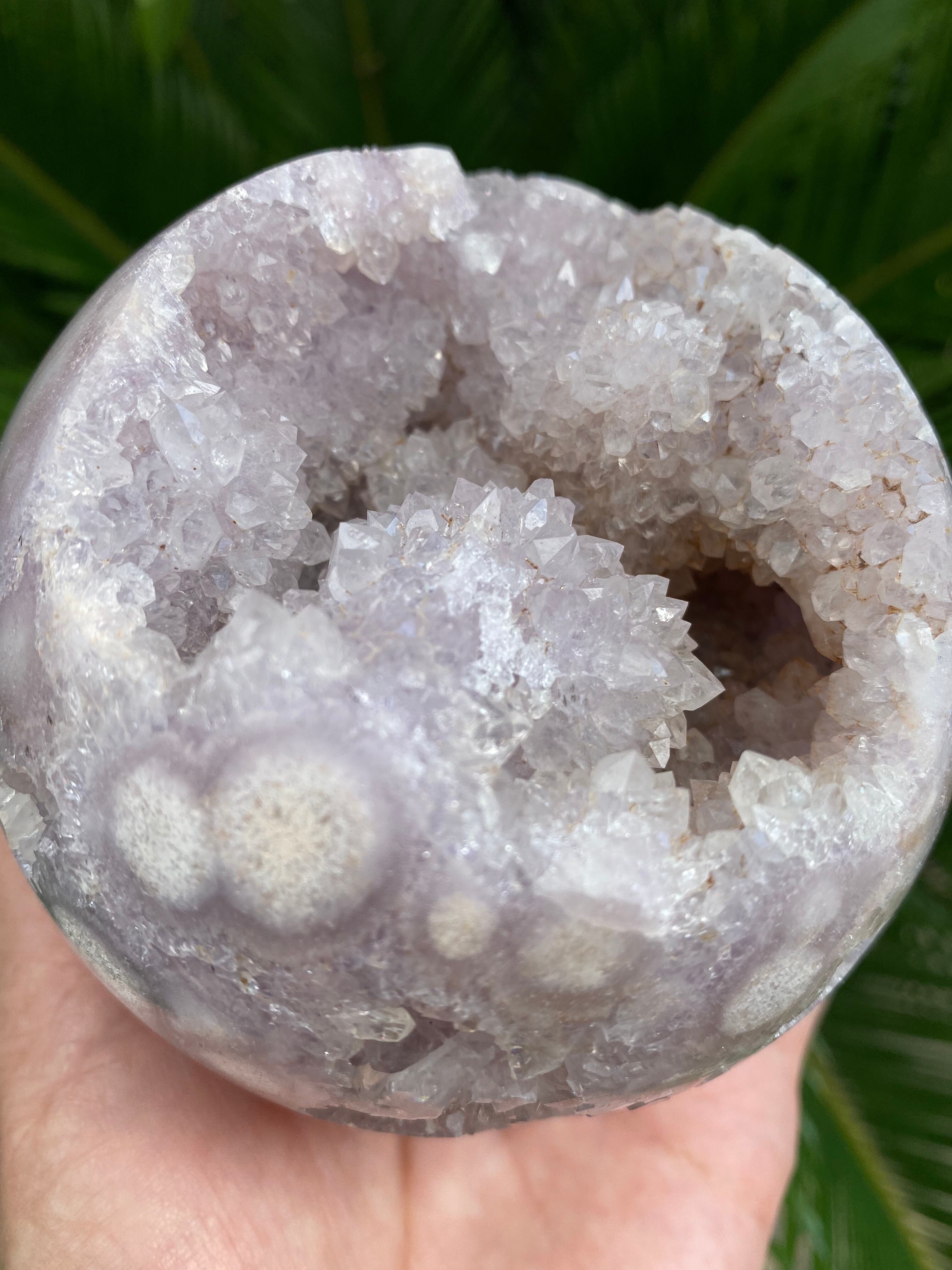 ドゥルージ部分全体が細かいラメのようにキラキラと輝き、フラワーアゲートの可愛い模様とアメジスト特有のキラキラした結晶の組み合わせがなんとも言えない位可愛さを放ってます