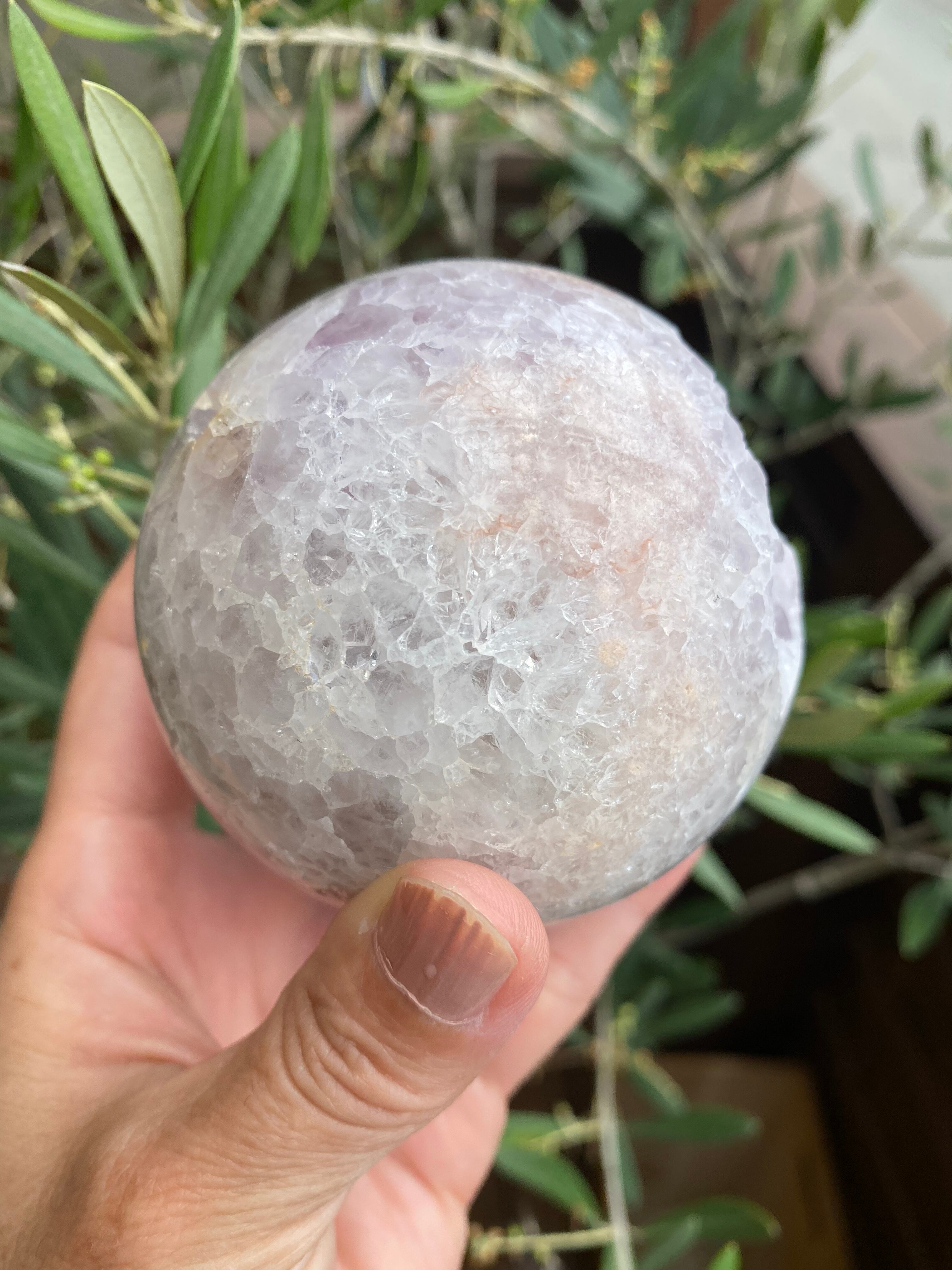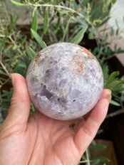大部分がアメジストがしめていますので、結晶の虹や透明感が半端なくキラキラとしたスフィアです。