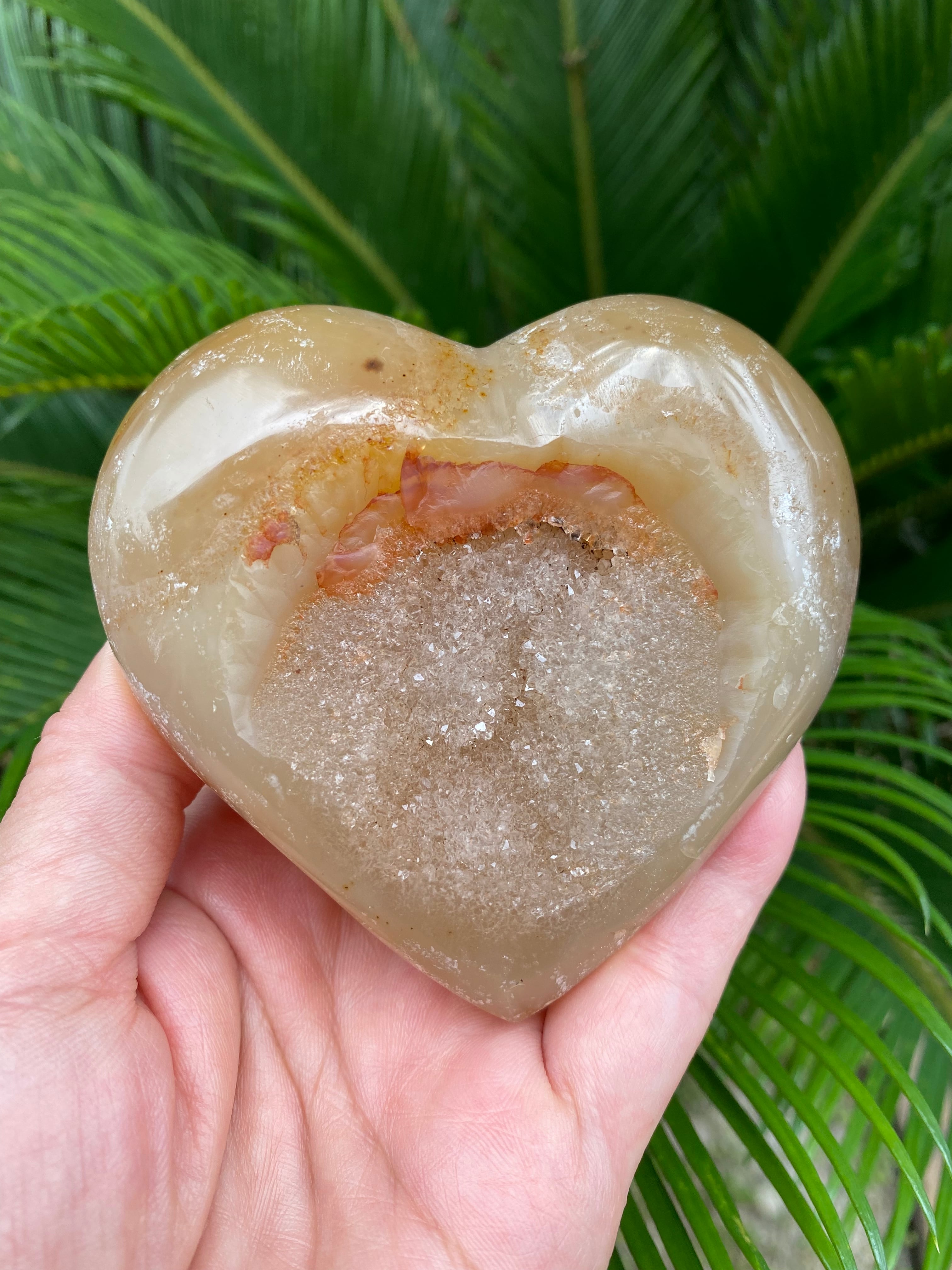 中央の小さな結晶のジオードがキラキラしてい一部カーネリアンが共生しています