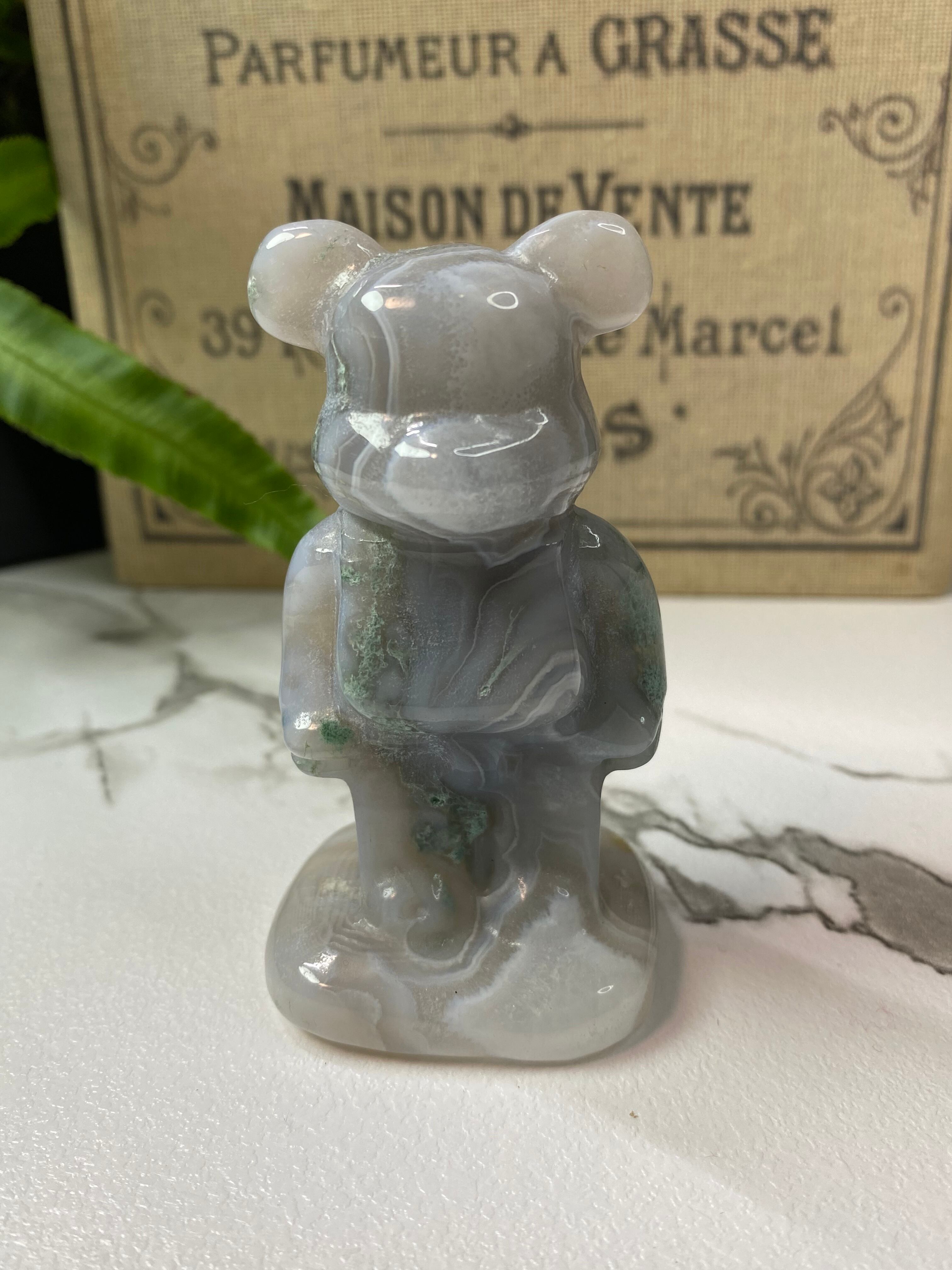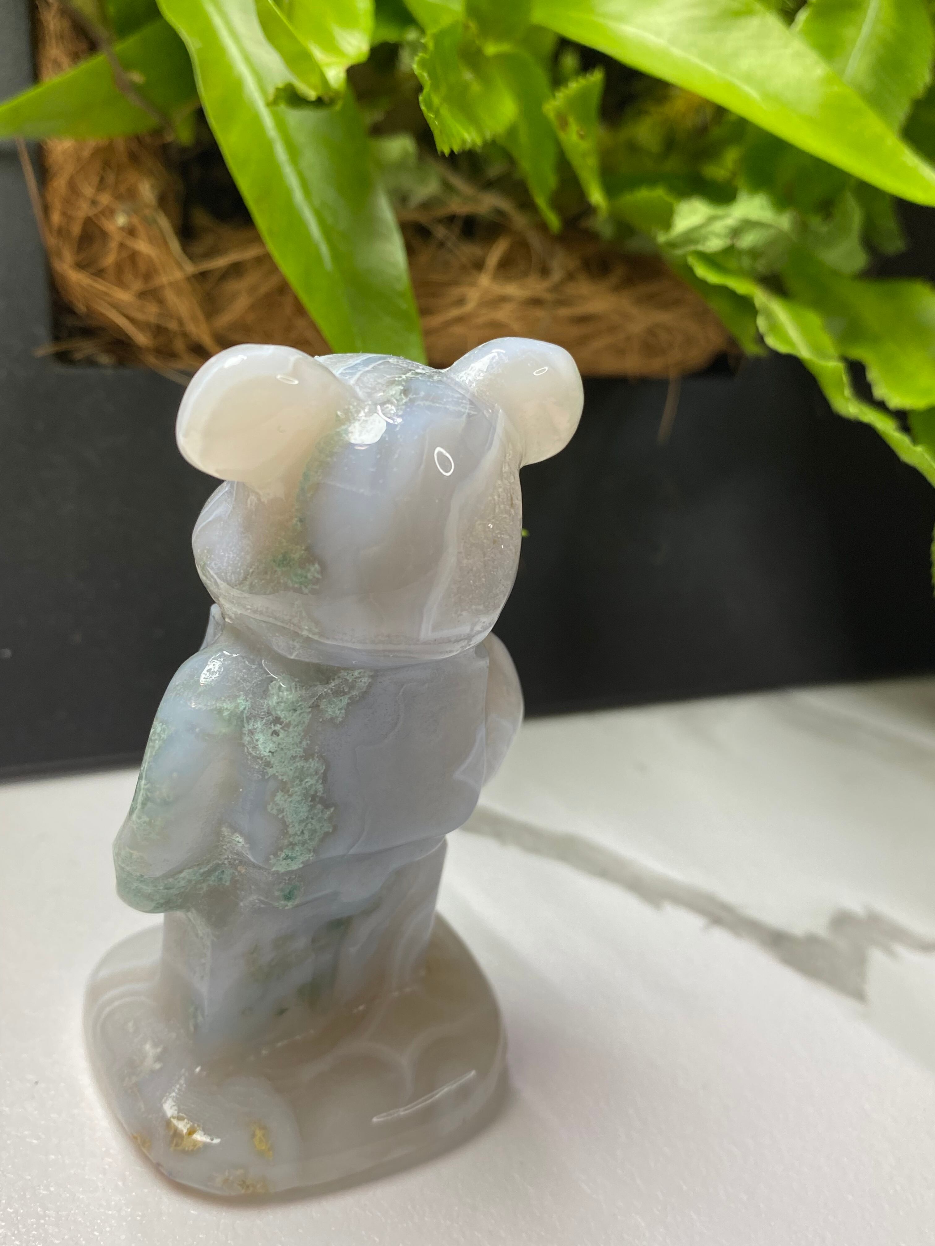 マダガスカル産のモスアゲートで、彫刻されたベアーです